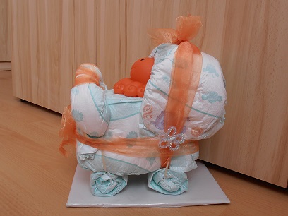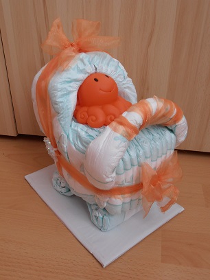 Popis torty: 17 ks plienok veľkosti midi, 1 ks hračka vhodná aj do vody (chobotnička)